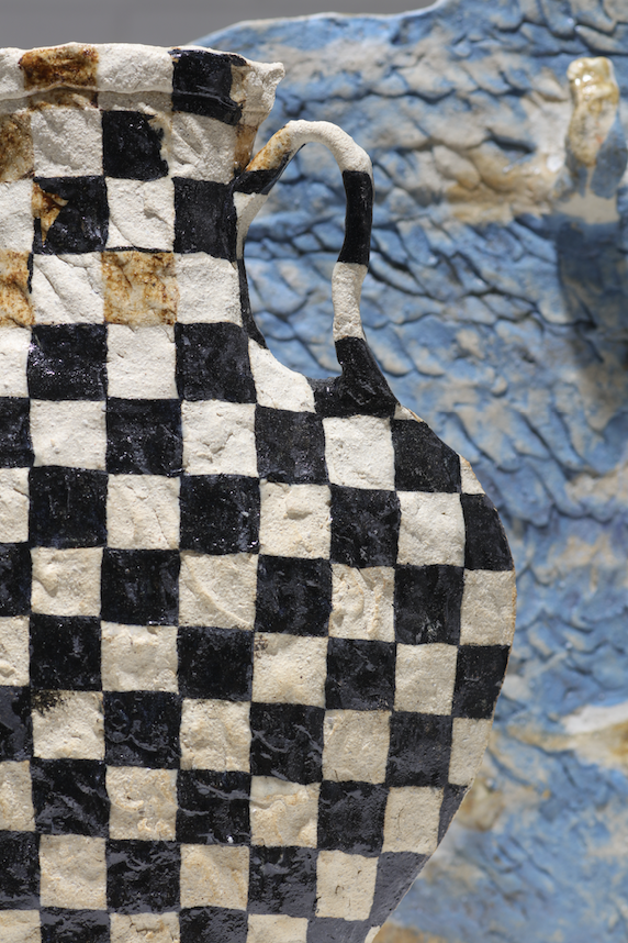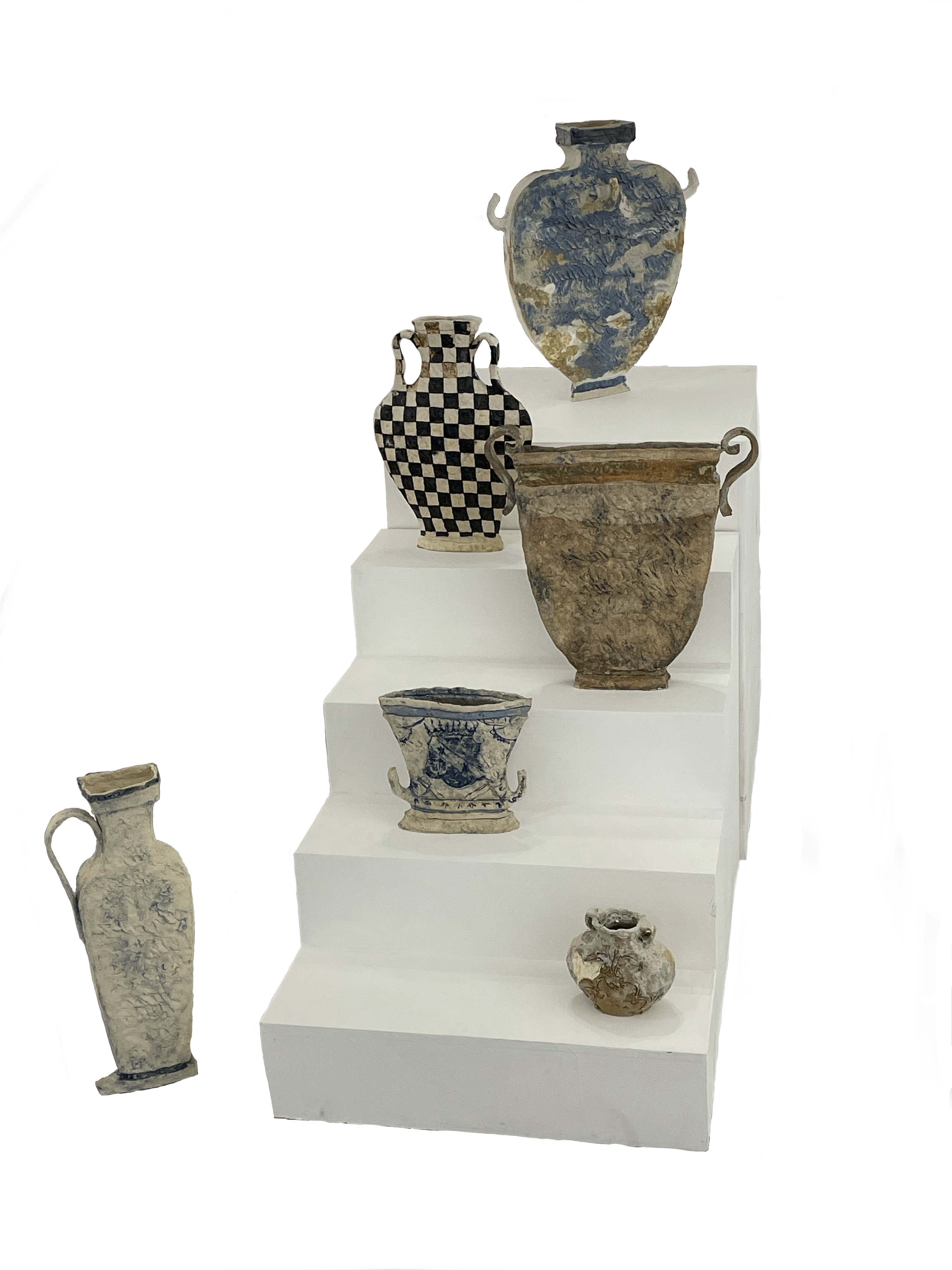 The Alibi series unfolds in three parts: the first addresses childhood, the second the dismantling of a home, and the third the theme of love. When shaping any form, there is always a sequence of actions, and inevitably, fingerprints and marks remain. By repeatedly filling and erasing these impressions with pigment, I create surfaces that expose the gaps and seams left behind.